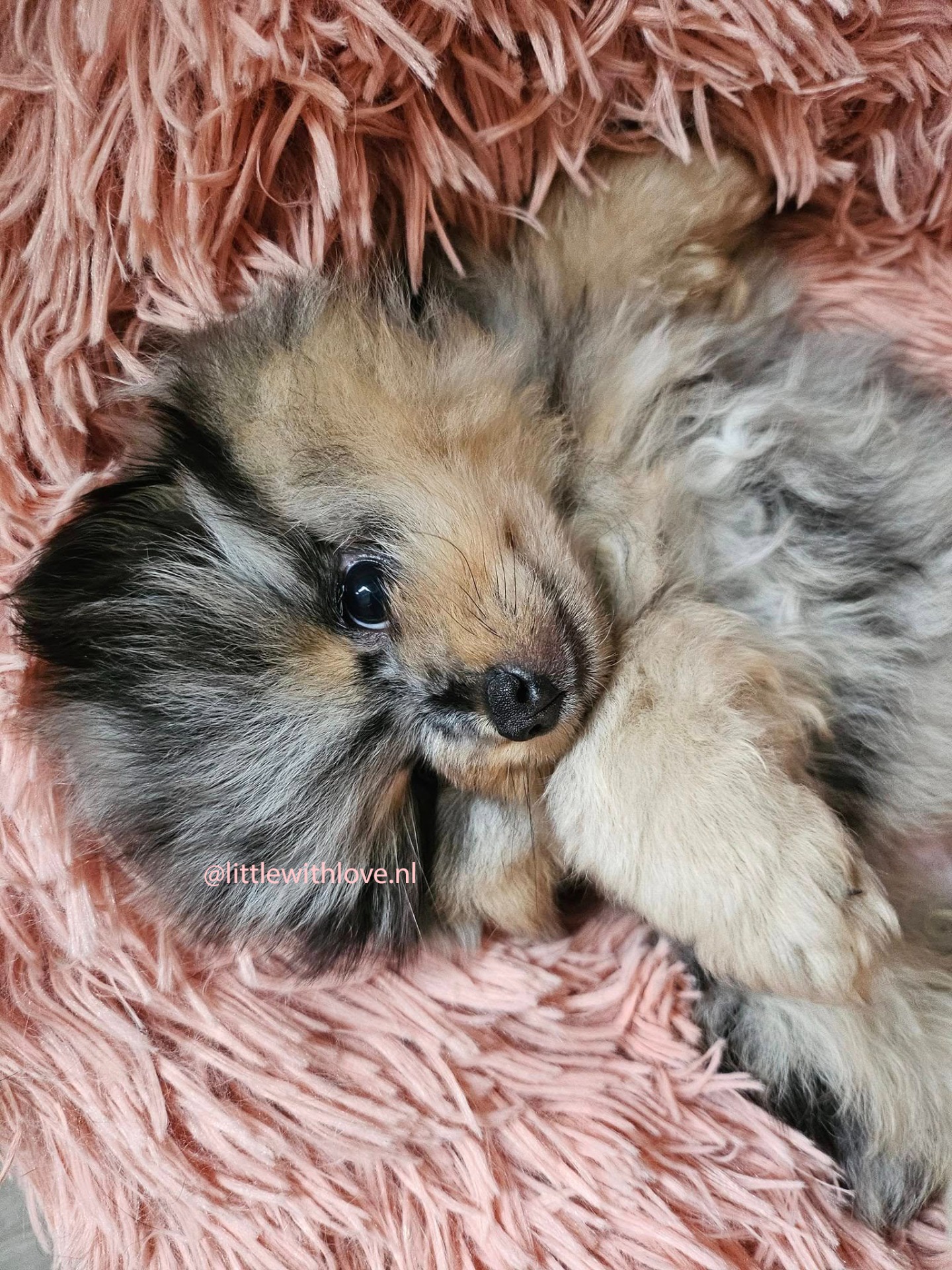 Wij hebben enkele keren per jaar een nestje pups, op dit moment enkel chihuahua pups. Onze pommeriaan moet eerst zelf nog een grote meid worden.